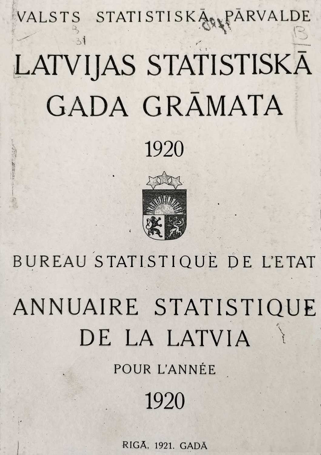 Latvijas statistiskā gada grāmata. Rīga, Valsts Statistiskā Pārvalde, 1921. gads.