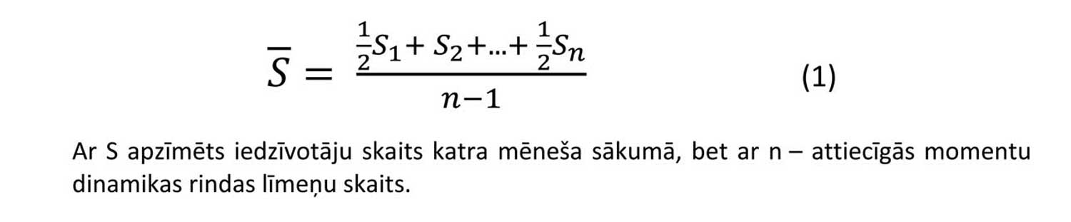 un vidējais iedzīvotāju skaits aprēķināms pēc formulas: