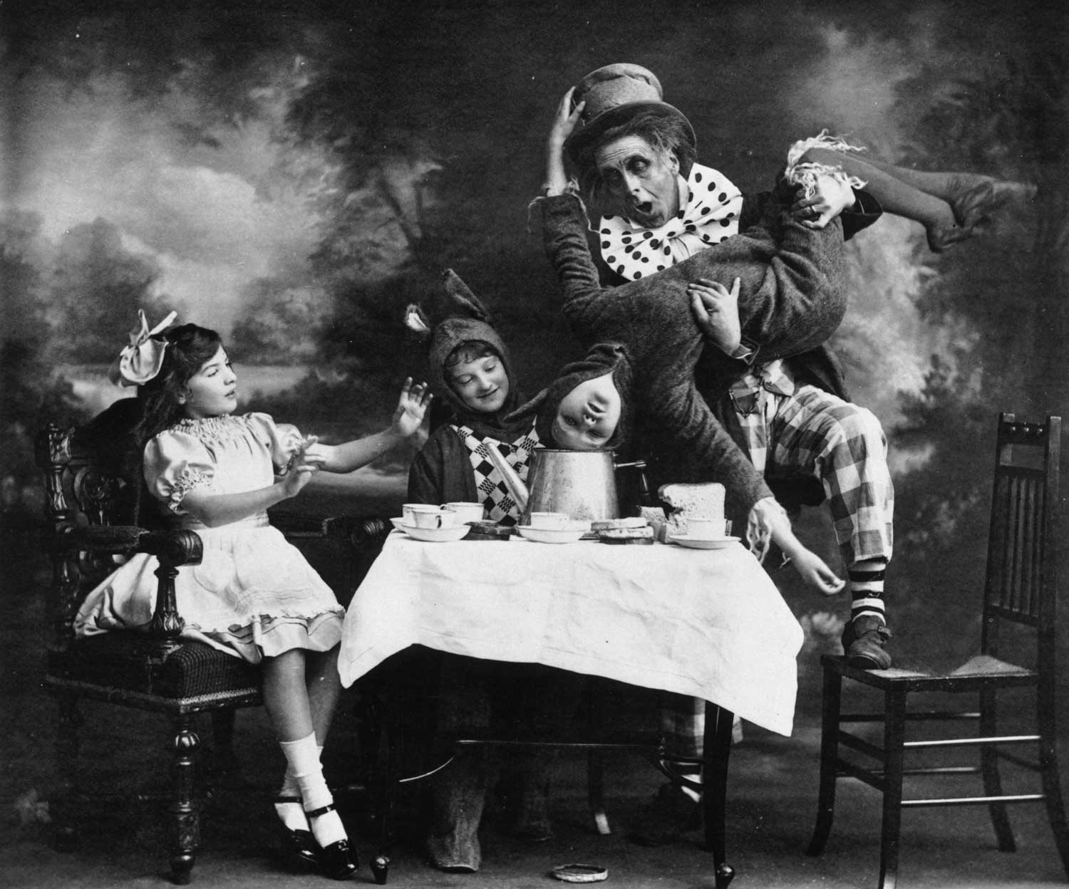 Aina no izrādes "Alise Brīnumzemē", Londonas teātra iestudējums ap 1910. gadu.