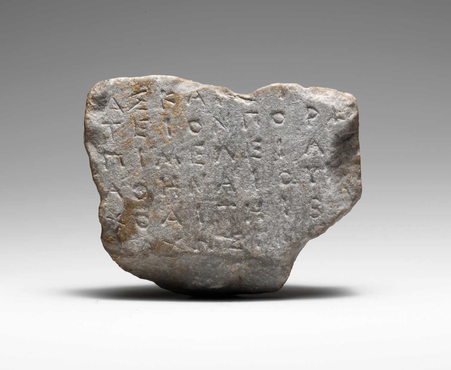 Atiskā dialekta fragments, atrasts Grieķijā, Atikā. Marmors, 4.–3. gs. p. m. ē.